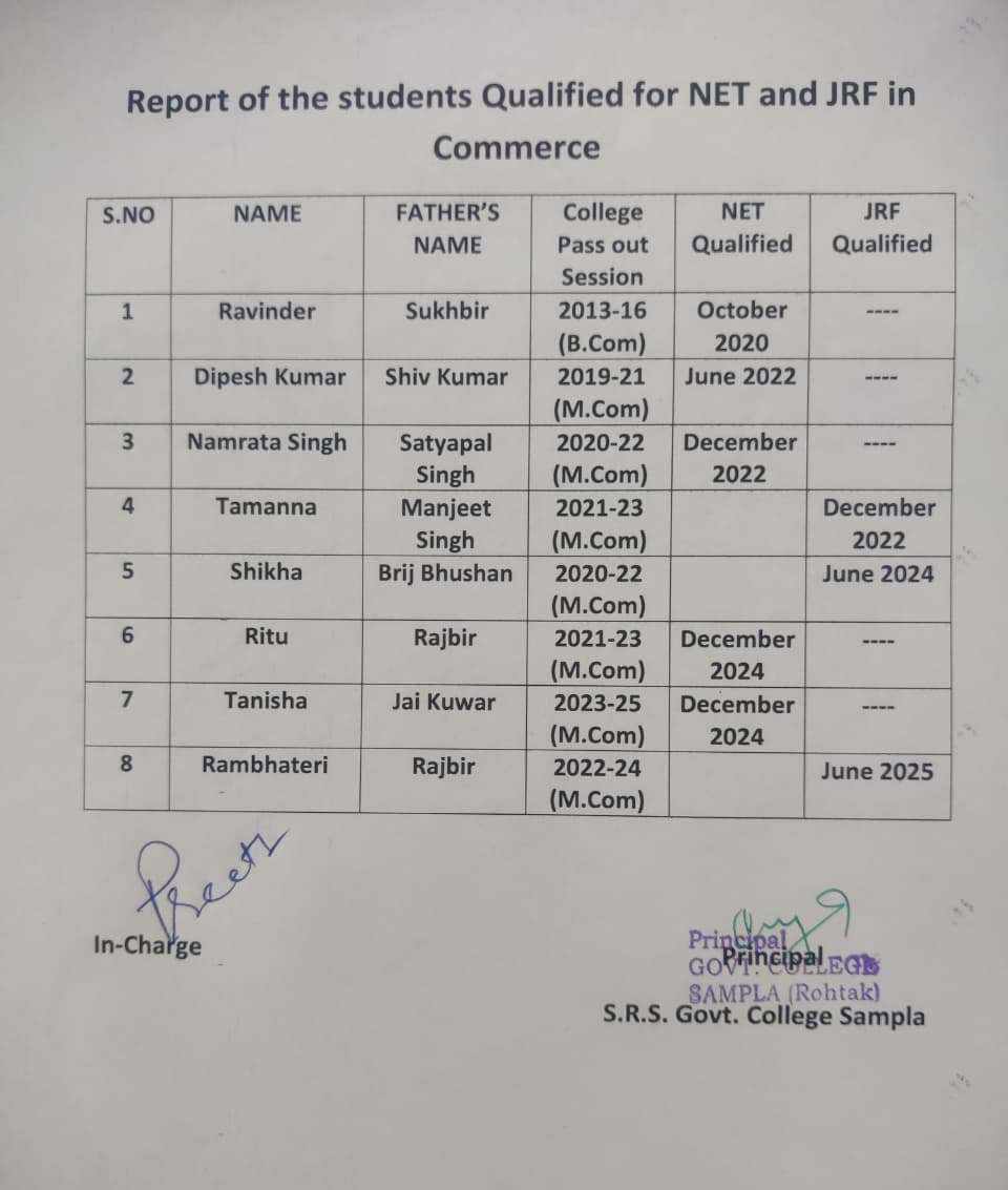 Data of JRF/NET qualified Students